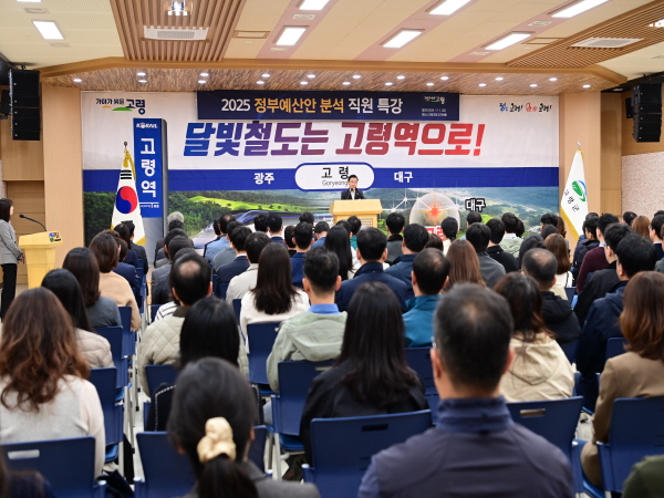 (경북=NSP통신) 김대원 기자 = 고령군(군수 이남철)은 1일 군청 대가야홀에서 직원 120여 명이 참석한 가운데 ‘2025년 정부예산안 분석 직원특강’을 실시했다.