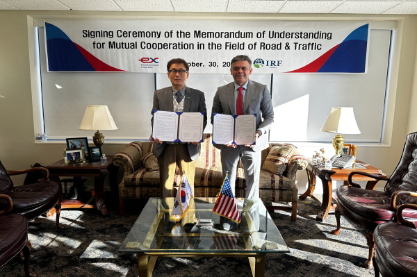 (경북=NSP통신) 김대원 기자 = 한국도로공사(사장 함진규)는 지난달 30일 미국 워싱턴DC에서 국제도로연맹(International Road Federation, IRF)과 도로교통 부문의 기술 및 인적 교류를 강화하기 위한 양해각서(MOU)를 체결했다.