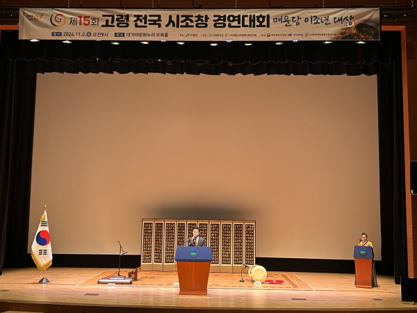 (경북=NSP통신) 김대원 기자 = 고령군이 주최하고 고령문화원과 대한시조협회 고령군지회가 주관하는 ‘제15회 고령 전국 시조창 경연대회’가 지난 2일 대가야문화누리 우륵홀에서 성황리에 막을 내렸다.