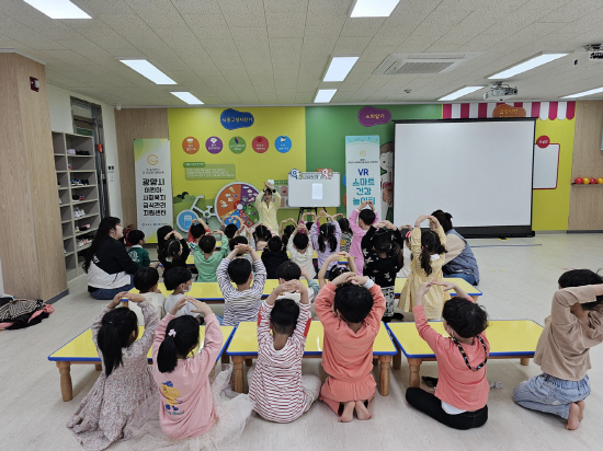 ‘스마트 건강 놀이터’는 VR 영양교육 프로그램이다. 관내 등록시설 26개소, 어린이 531명은 교육을 통해 식품구성자전거 속 6가지 식품군과 물의 중요성을 확인했으며, 함께 진행된 OX 퀴즈를 통해 음식을 골고루 섭취해야 하는 이유를 알아보았다.