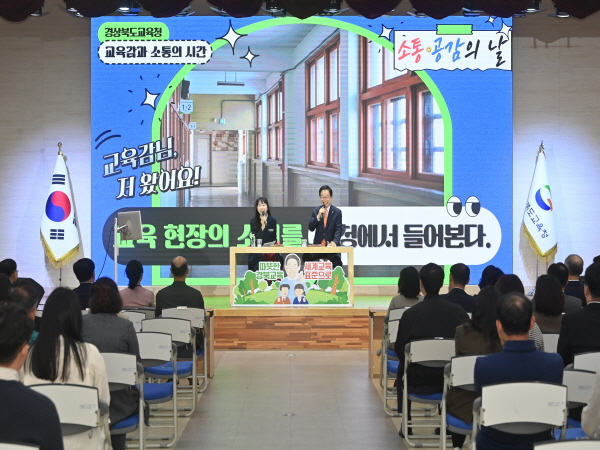 이어진 소통․공감의 시간에서는 ‘교육 현장의 소리를 본청에서 들어본다’라는 주제로 일선 교육 현장의 다양한 의견을 담은 직원들의 영상 12편이 상영됐다. 경북교육청 직원들은 현장의 어려움을 공유하며 교육감과 함께 해결책을 모색하는 뜻깊은 시간을 가졌다.