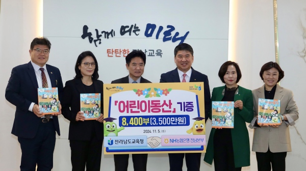 (전남=NSP통신) 김용재 기자 = 농협은행 전남본부(본부장 정재헌)는 5일 전남도교육청(교육감 김대중)에서 도내 어린이들의 올바른 인성 함양과 독서 환경 조성을 위한‘어린이동산’연간 구독권 8400부(3500만원 상당)를 전달했다.