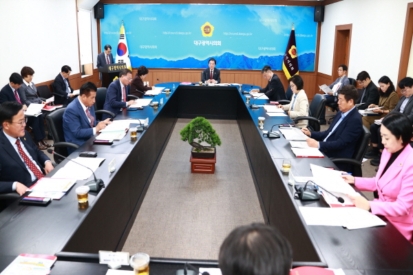 (경북=NSP통신) 김대원 기자 = 대구광역시의회(의장 이만규)는 6일 제313회 정례회 제1차 본회의 종료 직후 시의회 2층 회의실에서 이만규 의장을 비롯해 의장단과 각 상임위원장이 모인 가운데 ‘확대 의장단 회의’를 개최했다.