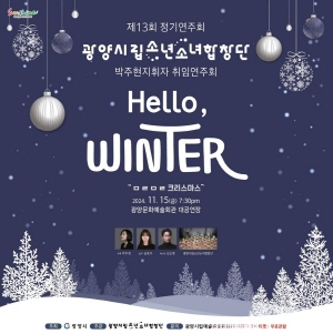 (전남=NSP통신) 김성철 기자 = 광양시는 11월 15일 오후 19시 30분 광양문화예술회관 대공연장에서 광양시립소년소녀합창단이 ‘Hello, Winter(미리 메리크리스마스)’를 주제로 공연을 선보인다고 알렸다.