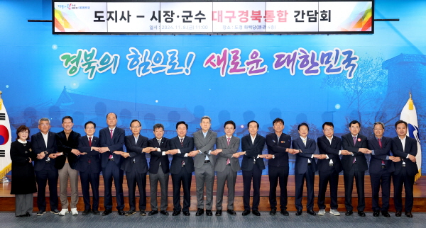 (경북=NSP통신) 조인호 기자 = 경상북도는 8일 도청 화백당에서 이철우 도지사와 시장, 군수를 포함한 주요 관계자들이 참석한 가운데 ‘도지사-시장군수 대구경북통합 간담회’를 개최했다.