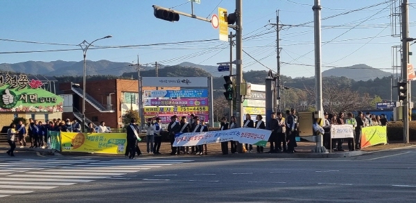 (전남=NSP통신) 남정민 기자 = 전남 순천시 서면행정복지센터는 최근 서면 선평삼거리에서 서면파출소, 순천농협 서면지점 등 관내 기관․단체 회원 100여 명이 참여해 안전사고 예방 합동 캠페인을 실시했다고 12일 밝혔다.