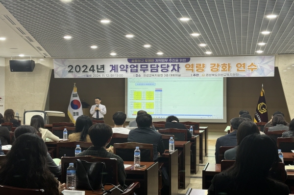 김기형 행정지원과장은 “이번 연수를 통해 계약업무 담당자들의 역량을 강화하고 청렴도 향상과 투명한 계약 행정을 구현하는데 도움이 되길 기대한다”고 밝혔다.