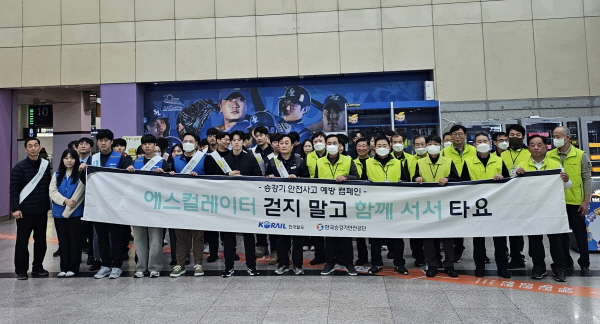 이날 코레일 및 승강기안전공단은 함께 홍보물을 나눠주고 걷거나 뛰는 과정에서 일어날 수 있는 넘어짐 안전사고를 예방하고자 ‘함께 서기’를 유도하는 현수막 등을 통해 적극적으로 홍보했다.