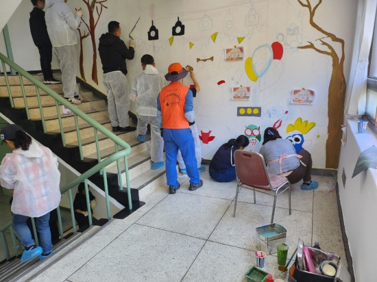 NSP통신-광양보건대학교 계단 양쪽 면 벽화그리기 (사진 = 광양보건대학교)