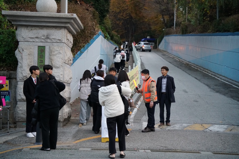 정문에 배치된 선생님은 수험생들의 수험표를 일일이 확인하고 수험생들은 고사장을 향해 오르막 발길을 재촉했다.