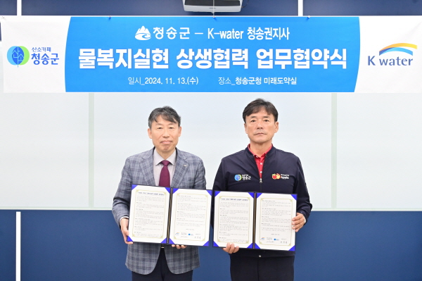 (경북=NSP통신) 조인호 기자 = 청송군(군수 윤경희)은 지난 13일 K-water 청송권지사와 ‘물복지 실현 상생협력 업무협약(MOU)’을 체결했다.