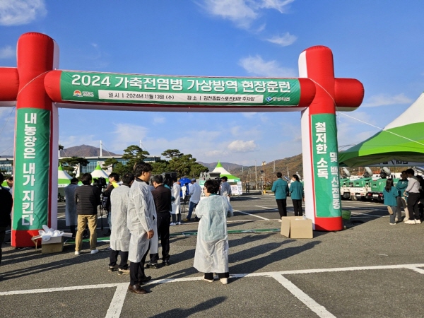 (경북=NSP통신) 조인호 기자 = 경상북도는 지난 13일 김천시 종합스포츠타운 일원에서 ‘조류인플루엔자 및 구제역 현장 대응 가상 방역 훈련’을 개최했다.