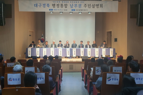 (경북=NSP통신) 조인호 기자 = 경상북도는 15일 경산시 시립박물관 강당에서 남부권 주민들을 대상으로 대구경북 행정통합 주민 설명회를 개최했다.