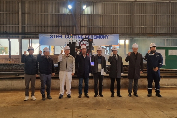 강재절단식 이후 용골거치, 턴오버(구조물 뒤집기) 등 건조 과정을 거쳐 내년 11월에 인도될 예정이다.