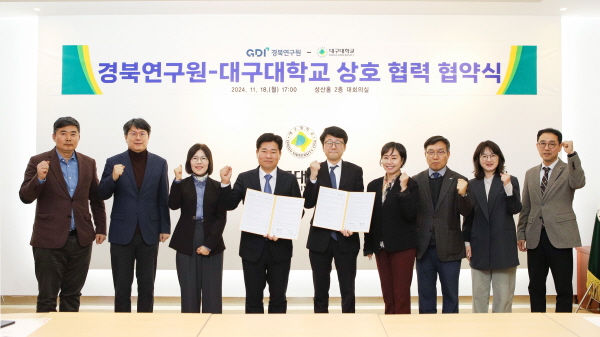 (경북=NSP통신) 김대원 기자 = 대구대학교(총장 박순진)가 경북연구원과 지역 산업 발전을 위한 정책 연구와 학술 교류를 위해 협약을 체결했다.