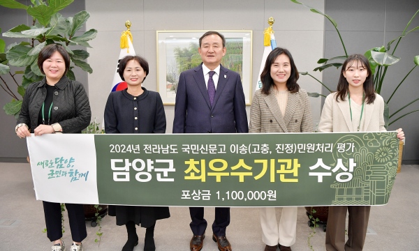 (전남=NSP통신) 김용재 기자 = 담양군(군수 이병노)이 전남도가 주관하는 2024년도 국민신문고 이송 민원 처리 실태점검 결과 지난해 우수상에 이어 최우수상과 포상금을 수상했다.