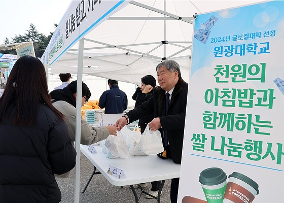 (전북=NSP통신) 김광석 기자 = 원광대학교(총장 박성태)는 19일과 20일 양일 간 재학생 및 구성원을 대상으로 ‘천원의 아침밥과 함께하는 쌀 나눔 행사’를 진행했다.