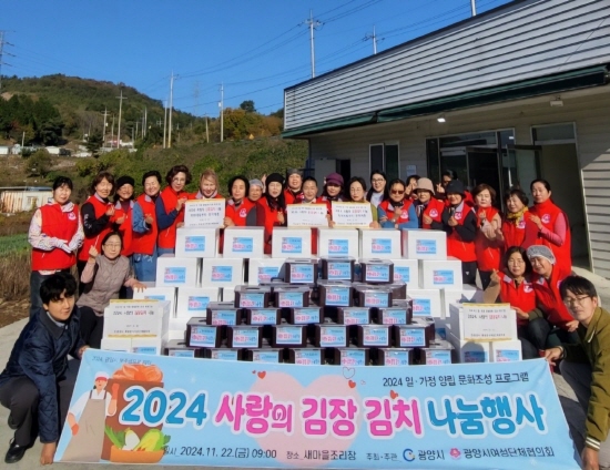 (전남=NSP통신) 김성철 기자 = 광양시는 지난 22일 새마을 조리장에서 광양시여성단체협의회가 2024 사랑의 김장김치 나눔 행사를 개최해 지역사회에 훈훈한 감동을 전했다고 밝혔다.