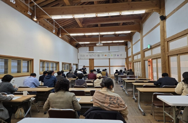 상주시 농촌신활력플러스 사업추진단은 지난 22일 태평성대경상감영공원 상산관에서 2024년 제2차 상주시농촌신활력플러스 시민포럼 ‘급식, 우리 먹거리를 우리에게’를 개최했다. (사진 = 상주시)