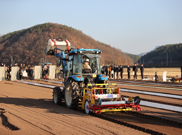 이번 연시회는 자율주행 키트를 부착한 트랙터를 활용해 일괄 파종(파종, 제초제 살포, 비닐피복) 시연을 통한 기계화에 따른 인력 절감 및 효율 상승효과를 농업인들이 직접 체감할 수 있도록 했다.