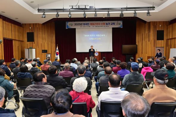 이날 교육에는 신청 농가 대부분이 참석해 교육장을 가득 메워 내년 외국인 계절근로자 사업에 대한 높은 기대와 관심을 보였다.