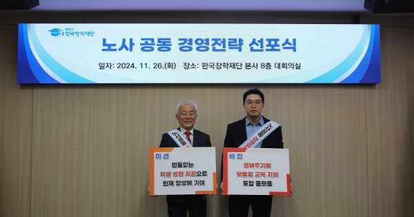(경북=NSP통신) 김대원 기자 = 한국장학재단(이사장 배병일)은 지난 26일 대구 본사 대회의실에서 ‘노사공동 경영전략 선포식’을 개최했다.