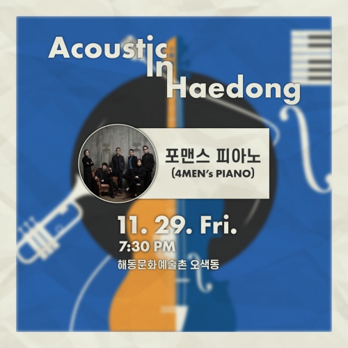 재단은 지난 9일 어쿠스틱 인 해동 1회차 공연에서 버클리 음악대학 출신 아티스트들이 결성한 재즈 밴드 프렐류드의 편안하고 감미로운 연주로 관객의 열화와 같은 호응을 얻은 바 있다.