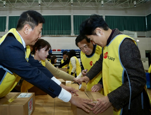 이날 김대중 교육감을 비롯한 도교육청 간부들은 실생활에 도움이 되고 학생들이 선호하는 신발을 선물로 준비해 정성들여 포장했다.