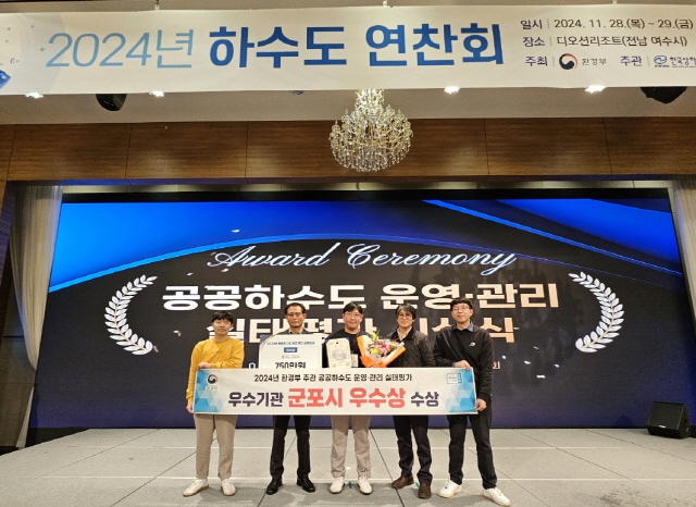 경기 군포시(시장 하은호)는 지난달 28일 환경부가 주최한 ‘2024년도 공공하수도 운영·관리 실태평가 우수기관 시상식’에서 우수상을 수상했다. 2023년 우수상에 이은 2년 연속 수상이다.