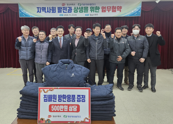 이날 행사에서 청송양수발전소장은 추운 날씨에 고생하는 청송군내 집배원 및 택배종사원에게 따뜻한 겨울을 보낼 수 있도록 방한용 패딩 약 500만 원 상당을 후원했다.