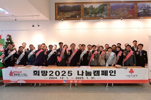 박현국 봉화군수는 “경제적 어려움에도 불구하고 지난해 캠페인 기간 동안 5억 8000여만 원의 성금이 모여 봉화군 사랑의 온도를 한껏 높일 수 있었다”며 “이번 희망2025 나눔캠페인에도 많은 분들이 동참해 우리 군에 따뜻한 기부 문화가 조성되기를 기대한다”고 전했다.