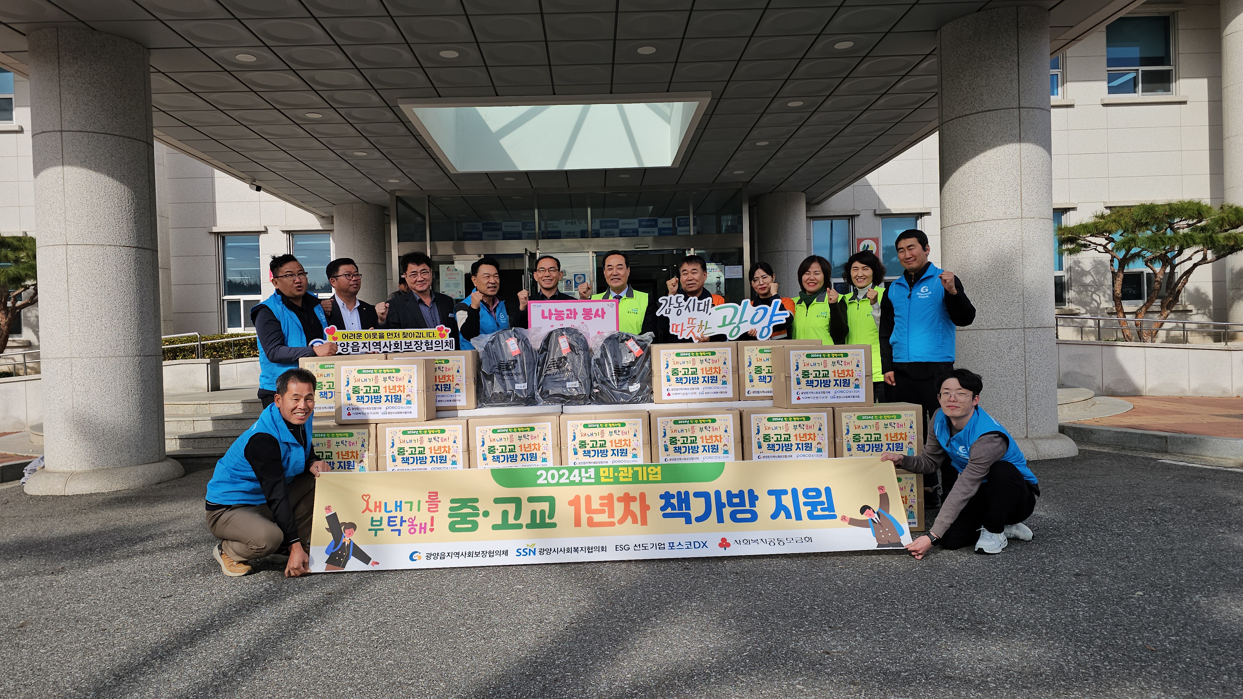 광양읍지역사회보장협의체, 광양시사회복지협의회(회장 윤태현), 포스코DX(대표 정덕균), 사회복지공동모금회 4개 기관·단체에서 민·관 협력 사업으로 뜻을 모아 추진했으며 사업비 530만 원으로 30개의 책가방을 구입해 광양읍 맞춤형복지팀이 가정방문을 통해 발굴한 한부모, 조손가구, 장애인 가구의 신입생들에게 지원했다.