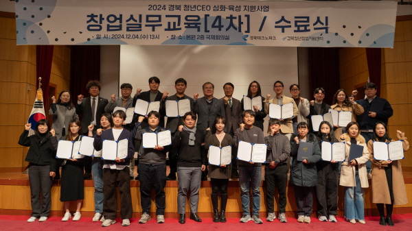 (경북=NSP통신) 김대원 기자 = 경북테크노파크(원장 하인성)는4일 본원 2층 국제회의실에서 ‘2024 경북 청년CEO 심화·육성지원사업’ 제4차 창업실무교육 및 수료식을 개최했다.