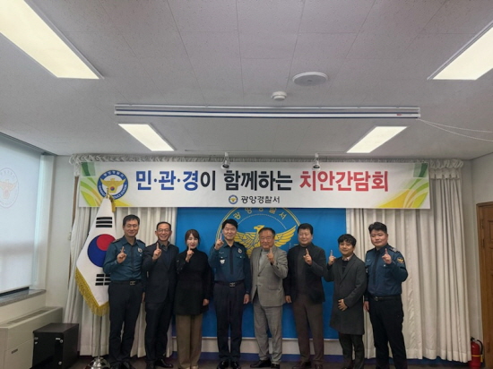 (전남=NSP통신) 김성철 기자 = 광양경찰서(서장 송기주)는 지난 3일 오전 광양경찰서에서 광양읍 선거구 시의원, 협력단체장, 광양읍장 등 주민대표 총 5명이 참석한 가운데 외국인 범죄예방 우수사례를 공유하고 현장 의견을 수렴하기 위한 외국인 범죄예방 치안간담회를 개최했다.