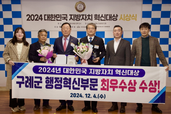 (전남=NSP통신) 김성철 기자 = 구례군은 지난 4일 전국시장군수구청장협의회와 국회 행정안전위원회가 후원하는 ‘2024년 대한민국 지방자치 혁신대상’에서 행정혁신부문 최우수상을 수상했다.