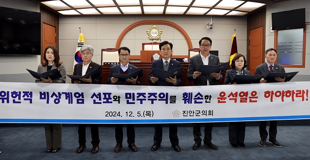 또한 “계엄령 선포와 국회 기능 무력화 행위에 대해 철저한 수사와 처벌을 촉구한다”며 “진안군의회는 어떠한 상황에서도 군민과 함께할 것”이라고 했다.