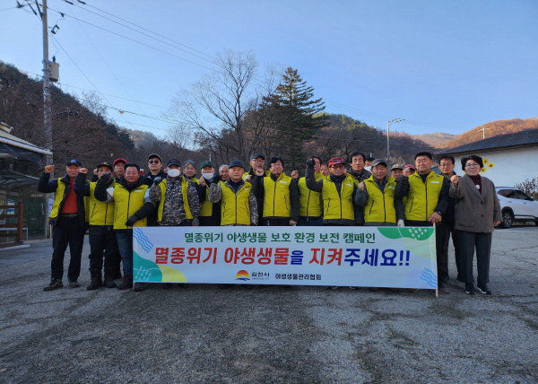 NSP통신-김천시는 지난 4일 증산면 수도산 일원에서 야생생물관리협회 김천시지회 회원들이 참석한 가운데 멸종위기종 보호를 위한 공존문화 조성 캠페인을 실시하고 불법 사냥도구 수거 활동을 펼쳤다. (사진 = 김천시)
