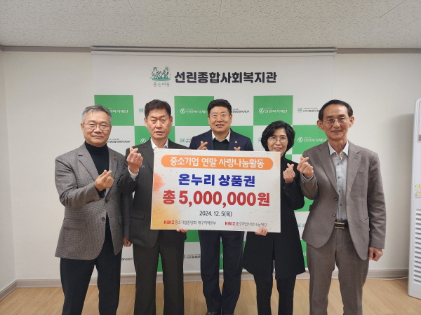 중기중앙회 중소기업사랑나눔재단이 지역 이웃과 온정을 나누고자 개최된 이날 전달식에는 김재용 대구시의회 경제환경위원장, 김광식 대구기계공구상협동조합 이사장, 최유호 선린종합사회복지관장, 박보리 가정종합사회복지관장, 고종섭 중기중앙회 대구지역본부장이 함께했다.