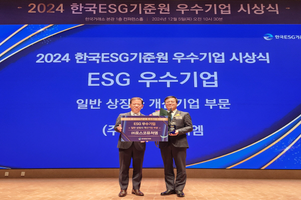 포스코퓨처엠은 5일 서울 여의도 한국거래소에서 개최된 ‘한국ESG기준원 우수기업 시상식’에서 ‘ESG 우수기업’ 상을 받았다.