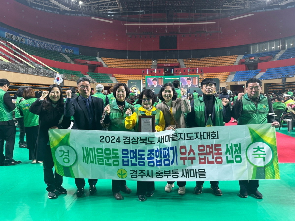 (경북=NSP통신) 조인호 기자 = 경주시 중부동이 지난 4일 경산실내체육관에서 열린 2024 경상북도 새마을지도자대회에서 새마을운동 읍면동 종합평가 우수상을 수상했다.