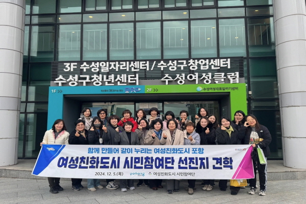 (경북=NSP통신) 조인호 기자 = 포항시 여성친화도시 시민참여단 20여 명은 5일 대구광역시 수성구 수성여성클럽을 방문해 여성친화도시 우수활동 사례를 벤치마킹했다.