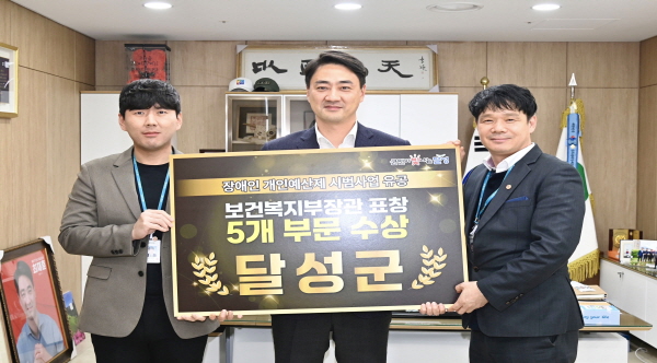 (경북=NSP통신) 김대원 기자 = 달성군(군수 최재훈)은 5일 보건복지부에서 열린 ‘장애인 개인예산제 시범사업 워크숍’에서 장애인 개인예산제 유공 우수 지자체 등 5개 부문에서 보건복지부 장관 표창을 수상했다.