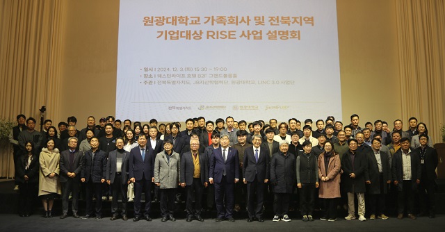 (전북=NSP통신) 서희경 기자 = 원광대학교(총장 박성태) LINC3.0사업단은 ‘2024 원광대 가족회사 및 전북특자도 기업대상 RISE 사업 설명회’를 익산 웨스턴라이프호텔 그랜드볼룸홀에서 개최했다고 6일 밝혔다.