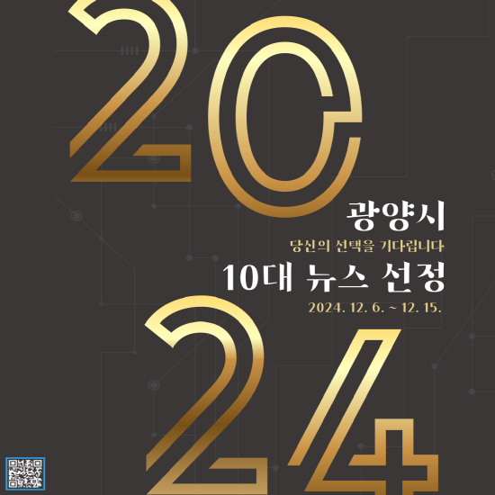 (전남=NSP통신) 김성철 기자 = 광양시가 올 한해 광양시를 빛내고 가장 관심을 끌었던 ‘2024년 올해의 10대 뉴스’를 선정하기 위해 12월 15일까지 온라인 설문조사를 실시한다.