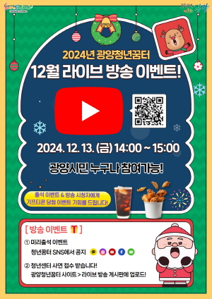 이번 라이브 방송은 12월 13일 오후 2시부터 3시까지 광양청년꿈터 유튜브를 통해 진행된다.