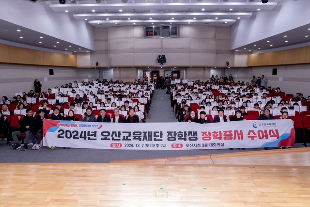 (경기=NSP통신) 조현철 기자 = 경기 오산시(시장 이권재)가 지난 7일 오산시청 3층 대회의실에서 2024년 오산교육재단 일반 및 특기장학생 346명에게 총 2억5459만원 상당의 장학증서를 수여했다.