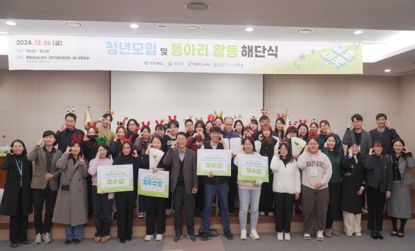 경북테크노파크는 지난 6일 금호이웃사촌마을 조성사업의 일환으로 청년모임 및 동아리 활동 지원사업 활동에 참여한 창업·홍보·활동 분야 13개 동아리 및 관계자 60여 명이 참석한 가운데 ‘청년모임 및 동아리 활동 해단식’을 개최했다. (사진 = 경북테크노파크)