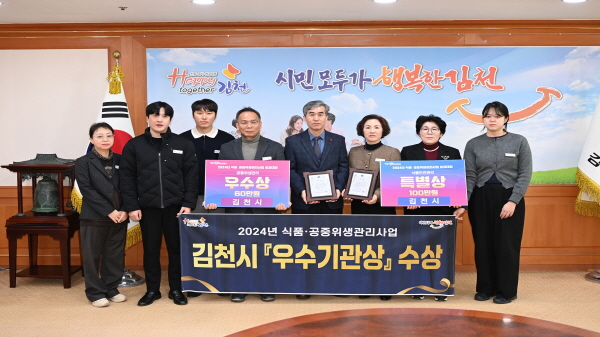 (경북=NSP통신) 김대원 기자 = 김천시는 지난 9일 안동 그랜드호텔에서 열린 경상북도 주관‘2024년 식품·공중위생관리사업 성과대회’에서 식품안전관리사업 특별상 수상, 공중위생관리사업 우수상을 수상해 주목할만한 성과를 거뒀다.