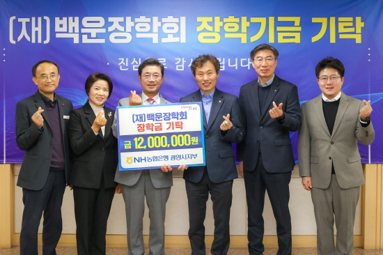 한편 NH농협 광양시지부의 기탁금 전달 외에도 백운장학회에 기부의 손길이 연달아 이어지고 있다. 왕상희 동남종합건설 대표이사가 1000만 원, 광양시통신공사협회가 300만 원을 기탁하는 등 여러 개인과 단체가 지역 교육 발전에 마음을 보태고 있다.