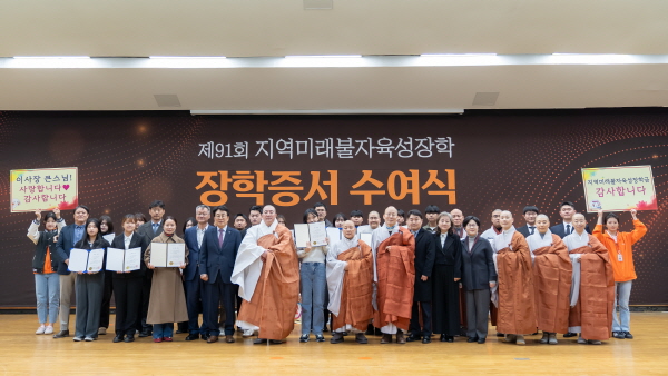 (경북=NSP통신) 조인호 기자 = 동국대학교 건학위원회가 13일 교내 문무관에서 제 91회 ‘지역미래불자육성장학’ 장학증서 수여식을 개최했다.